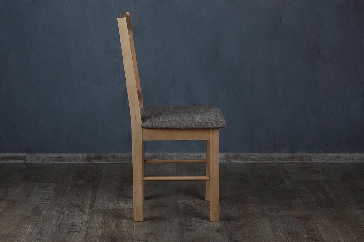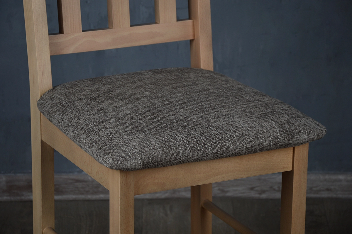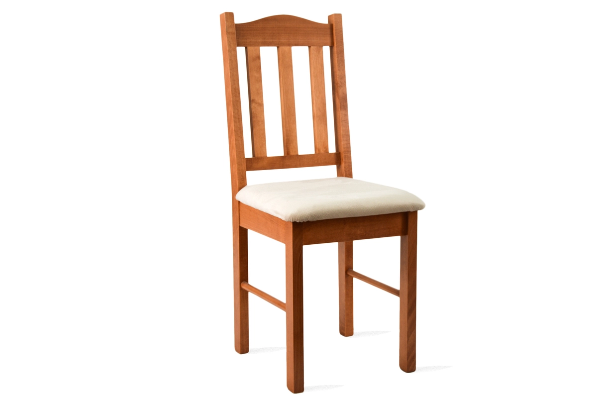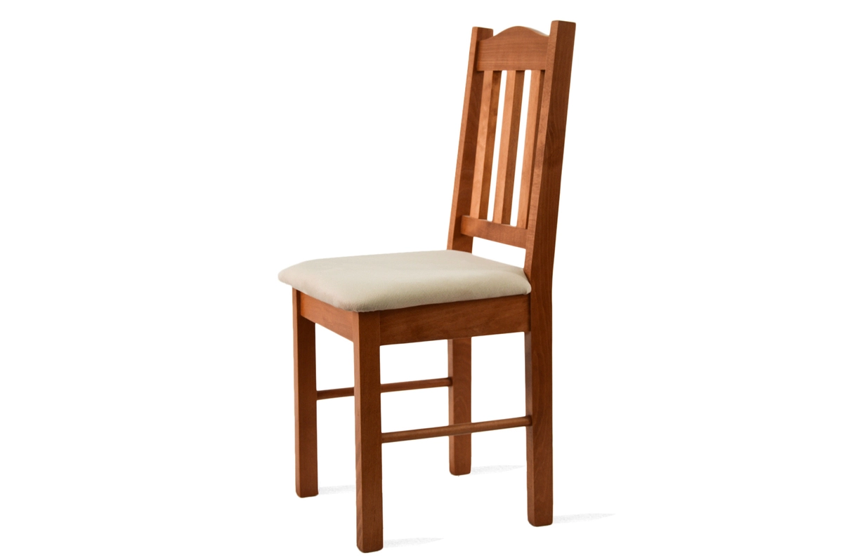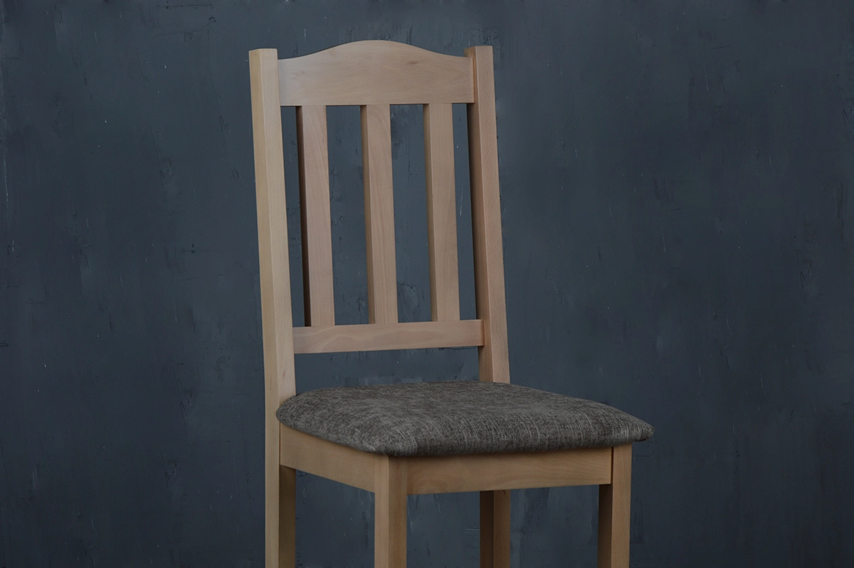 Klasyczne krzesło drewniane tapicerowane wysokiej klasy materiałem obiciowym o zwiększonej odporności na wycieranie i zabrudzenia to doskonały wybór dla wielu współczesnych kuchni i jadalni, zwłaszcza tych urządzonych w tradycyjny sposób. Krzesło do kuchni model 16 to mebel wykonany z twardego drewna bukowego malowanego wysokiej klasy bejcami wodnymi (chronią drewno i nadają mu niezwykle elegancki wygląd), wykończony miękkim, tapicerowanym siedziskiem i smukłym, wysokim oparciem, co gwarantuje wyższy komfort siedzenia przy kuchennym stole.