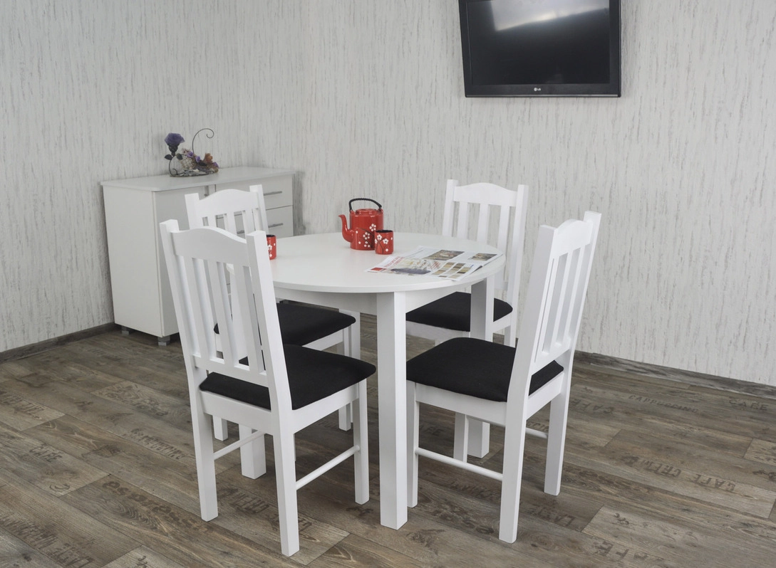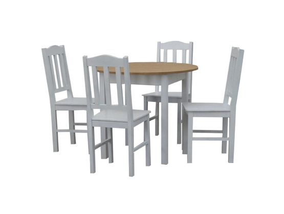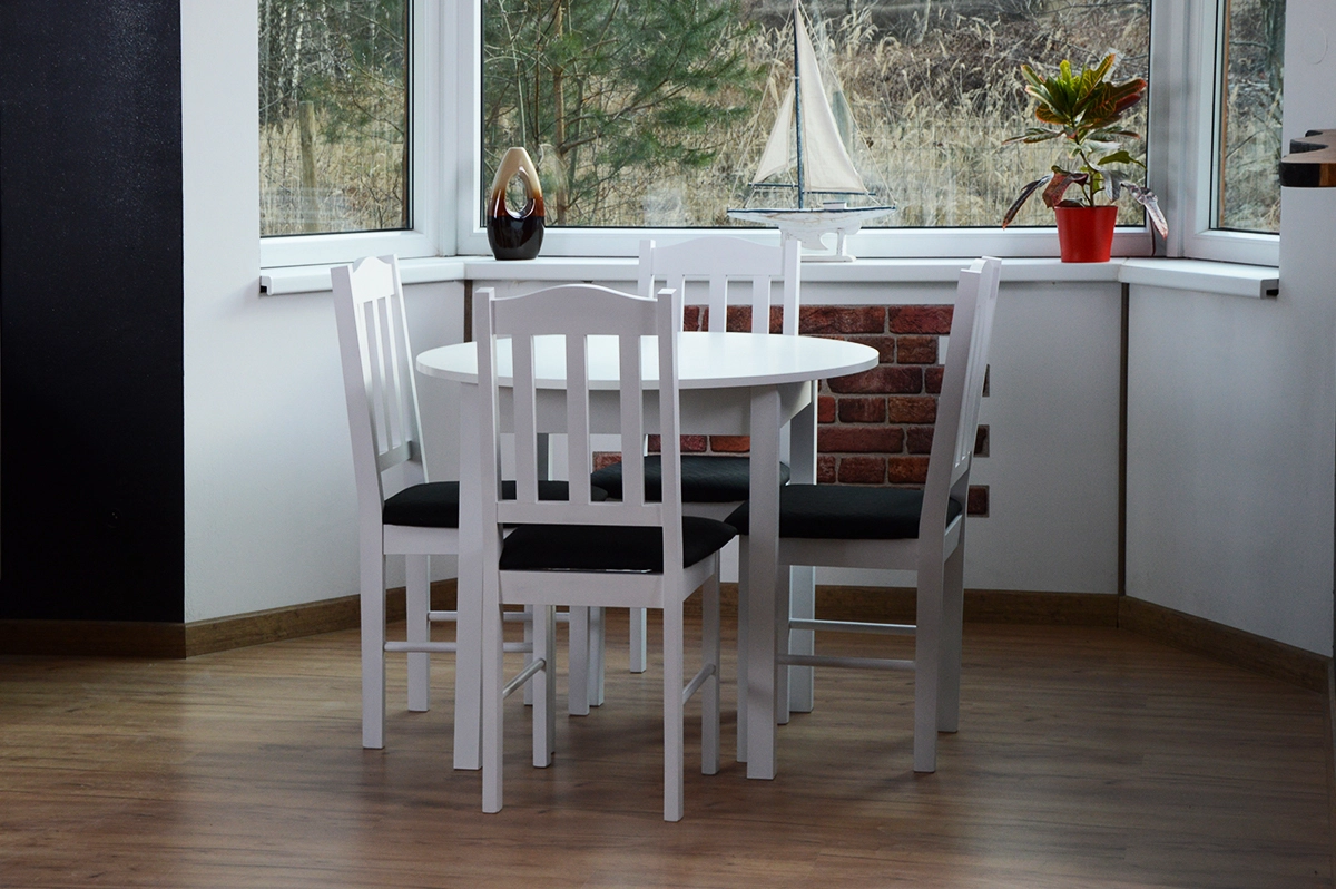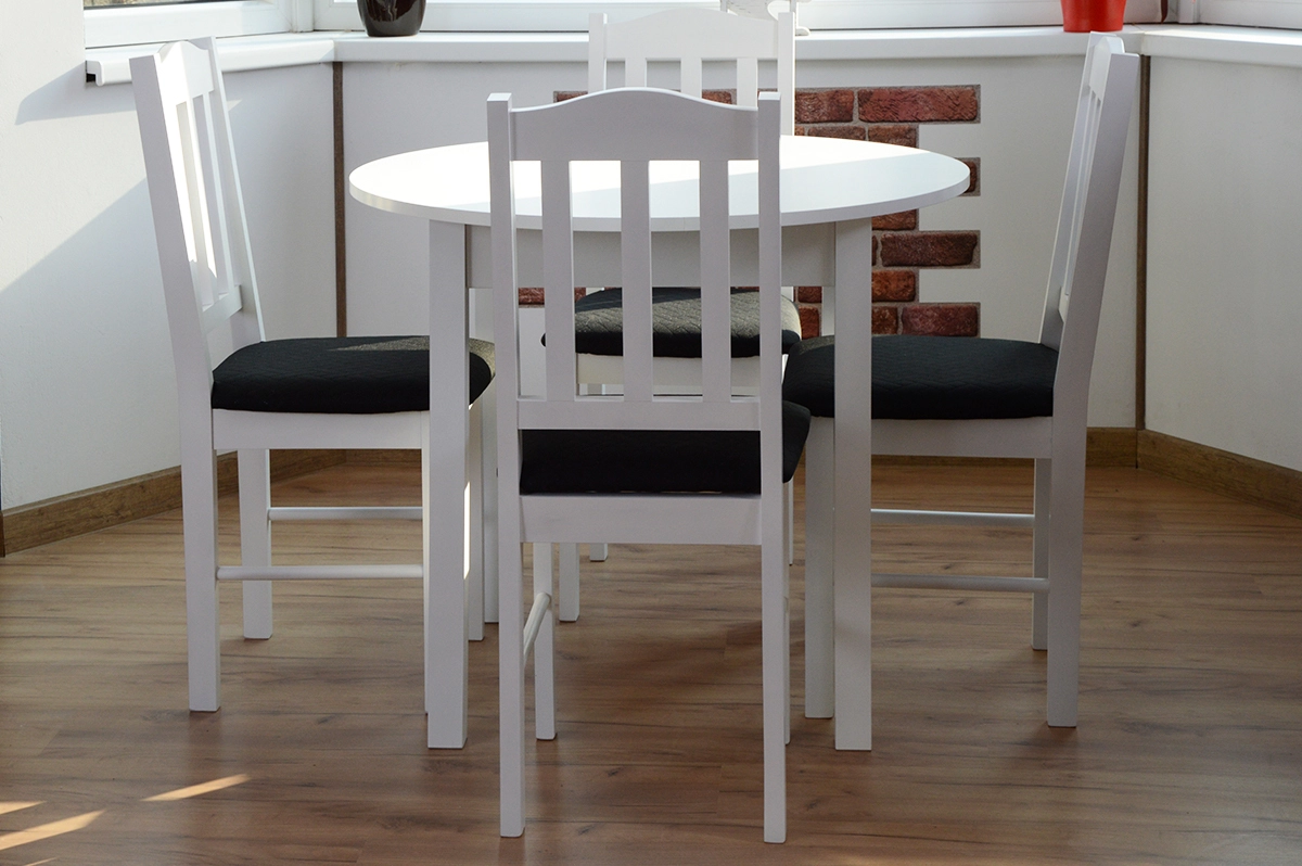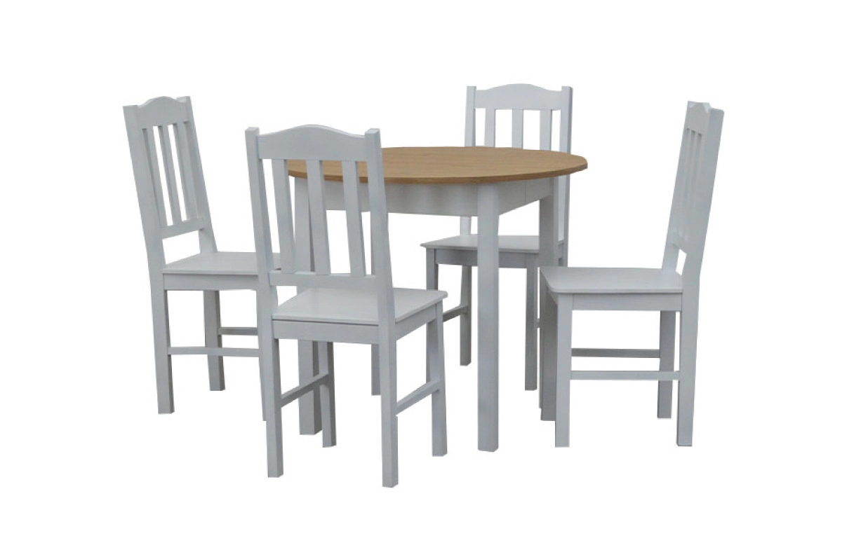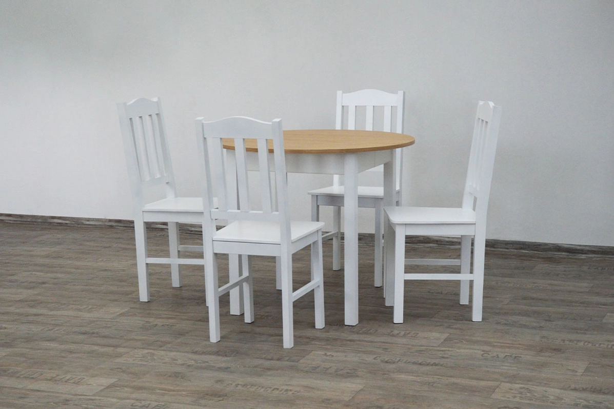Stół okrągły ST35 z krzesłami drewnianymi model 12 – zestaw mebli do jadalni i kuchni