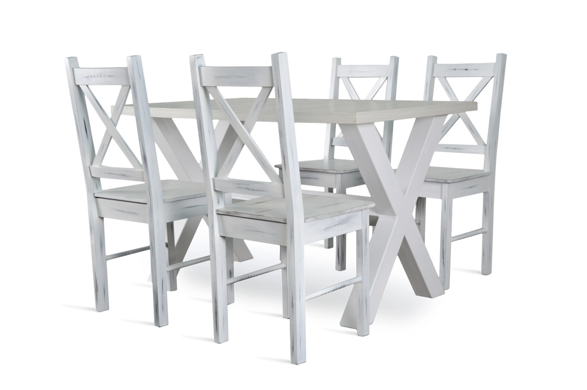 Kuchenny zestaw meblowy, w którego składzie znalazł się stół loftowy i cztery krzesła drewniane model 79 to doskonały wybór dla wnętrz urządzonych w stylu skandynawskim lub holenderskim. Oczywiście wyjściowy kolor mebli może być zmodyfikowany w celu lepszego ich dopasowania do wystroju konkretnej kuchni. Prezentowany stół i krzesła do kuchni, jako minimalistyczny zestaw meblowy, sprawdzą się również w jadalniach czy nowocześnie urządzonych salonach łączonych z aneksem kuchennym.
