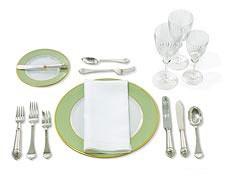 Nie przerażajmy się ilością sztućców i kieliszków ułożonych na blacie stołu.